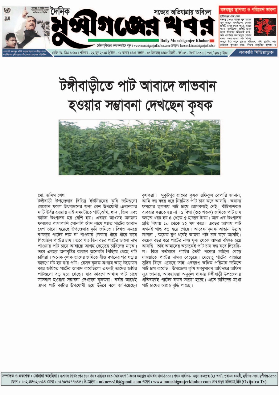 টংগীবাড়িতে পাট আবাদে লাভবান হওয়ার সম্ভবনা দেখছেন কৃষক।