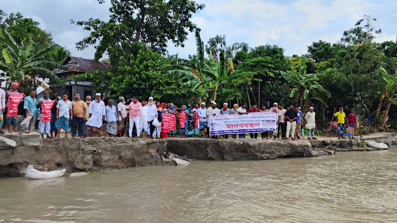 এলাকায় স্থায়ী কোনো বেড়িবাঁধের ব্যবস্থা গ্রহণ করা হয়নি। মানববন্ধনে