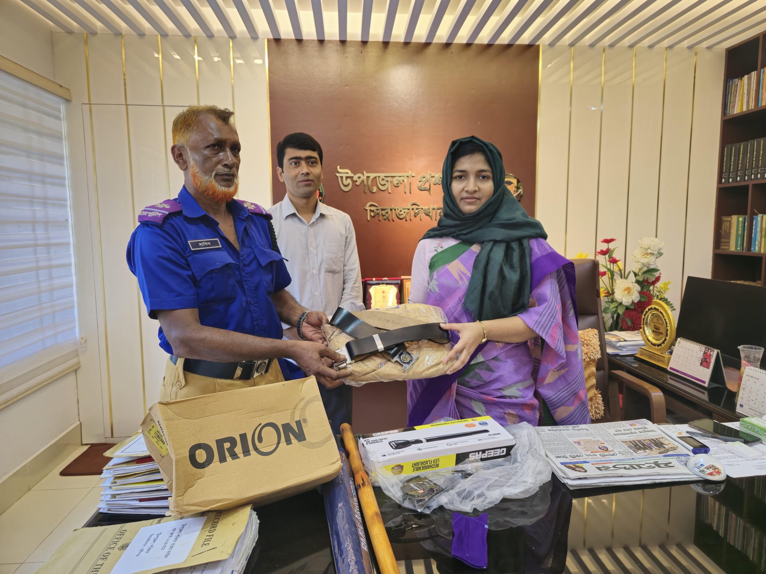 মুন্সীগঞ্জের সিরাজদিখানে ১২৮ জন গ্রাম পুলিশ সদস্যকে পোশাক, জুতা, মোজা এবং বেল্ট বিতরণ করেন উপজেলা নির্বাহী কর্মকর্তা শাহিনা আক্তার।বুধবার ২২ অক্টোবর সকাল ১০ টার দিকে উপজেলা পরিষদ অডিটোরিয়ামে এ পোষাক ও অন্যান্য সামগ্রীর পবিতরণ করেন।