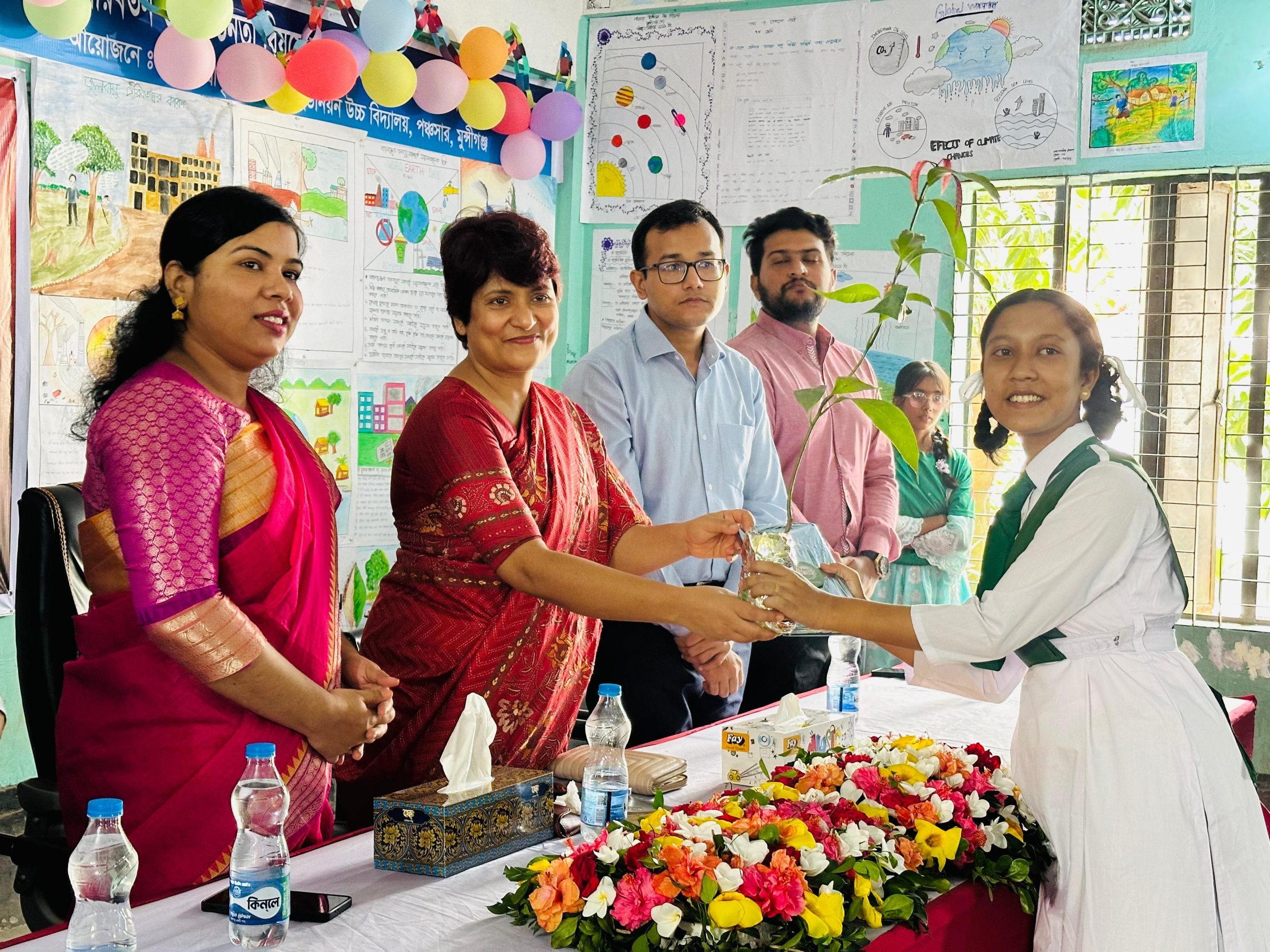 বই ও গাছের চারা তুলে দেন। পরে শিক্ষার্থীদের নিয়ে পরিচ্ছন্ন পরিবেশ ও